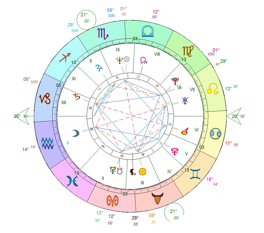 Direcciones primarias según Bezza / Fumagalli / Jay: Esta carta de direcciones "en el mundo" fue diseñada en colaboración con Daniele Jay y está basada sobre las investigaciones de G. Bezza, M. Fumagalli y ella misma (véase su libro "El Cielo en movimiento"). — PRO
